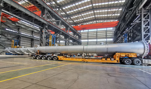 萬德化學(東營)有限公司拔頭油分離塔設(shè)備出廠運輸